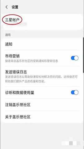 进入设置点击三星帐户进入