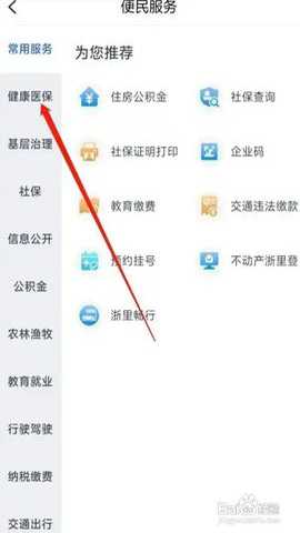 选择【健康医保】选项点击跳转进入进行下一步操作;