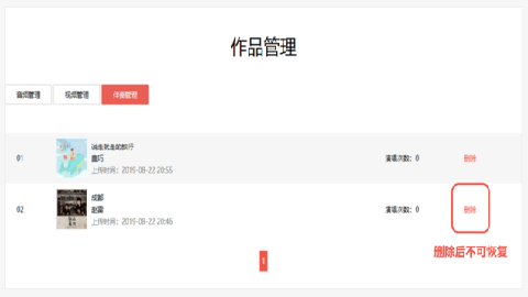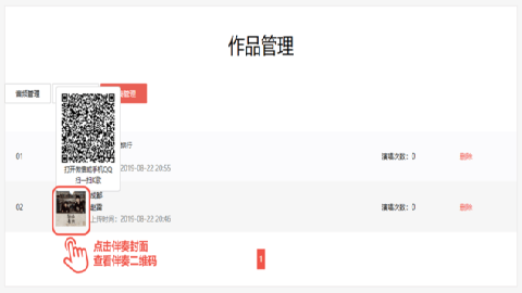 (3)删除已上传伴奏:点击伴奏对应的“删除”按钮即可删除伴奏,删除后不可恢复,伴奏管理页面也不会再显示该伴奏,请谨慎操作。
