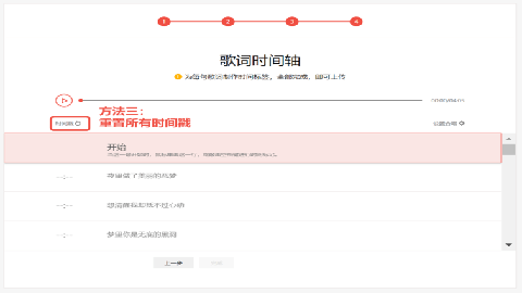 只需要重置某一句歌词的时间轴时,可点击该句前面的回转箭头,则此句以及此句以下的所有时间戳将被重置。