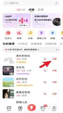先打开APP,进入点歌页面,选择歌曲,点击k歌按钮