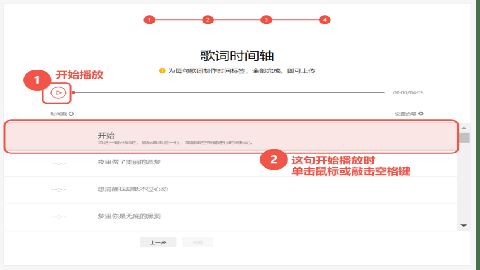 当第一句歌词开始播放的时候,单击鼠标或敲击空格键一次,完成对该句歌词的标注。第二句歌词开始播放的时候,重复该操作,直到完成全曲标注。