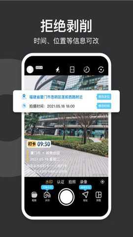 由厦门创世线程科技有限公司旗下推出的水印打卡相机是一款打卡相机软件,它提供了丰富的定位信息和自定义选项,让用户能够轻松地为照片添加水印。支持根据定位信息自动添加水印,让你的照片更加个性化和有趣,水印的设计让用户在打卡时能记录这一瞬的时间和位置,在整理照片时再也不怕手忙脚乱了。