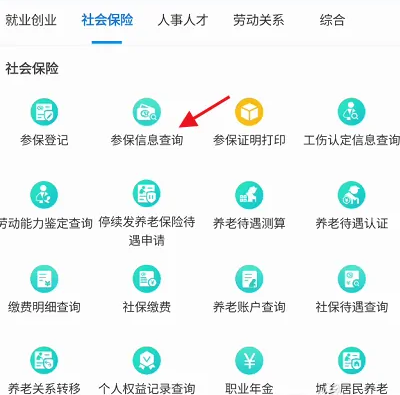 进入办事,找到社会保险,点击下方的参保信息查询进入