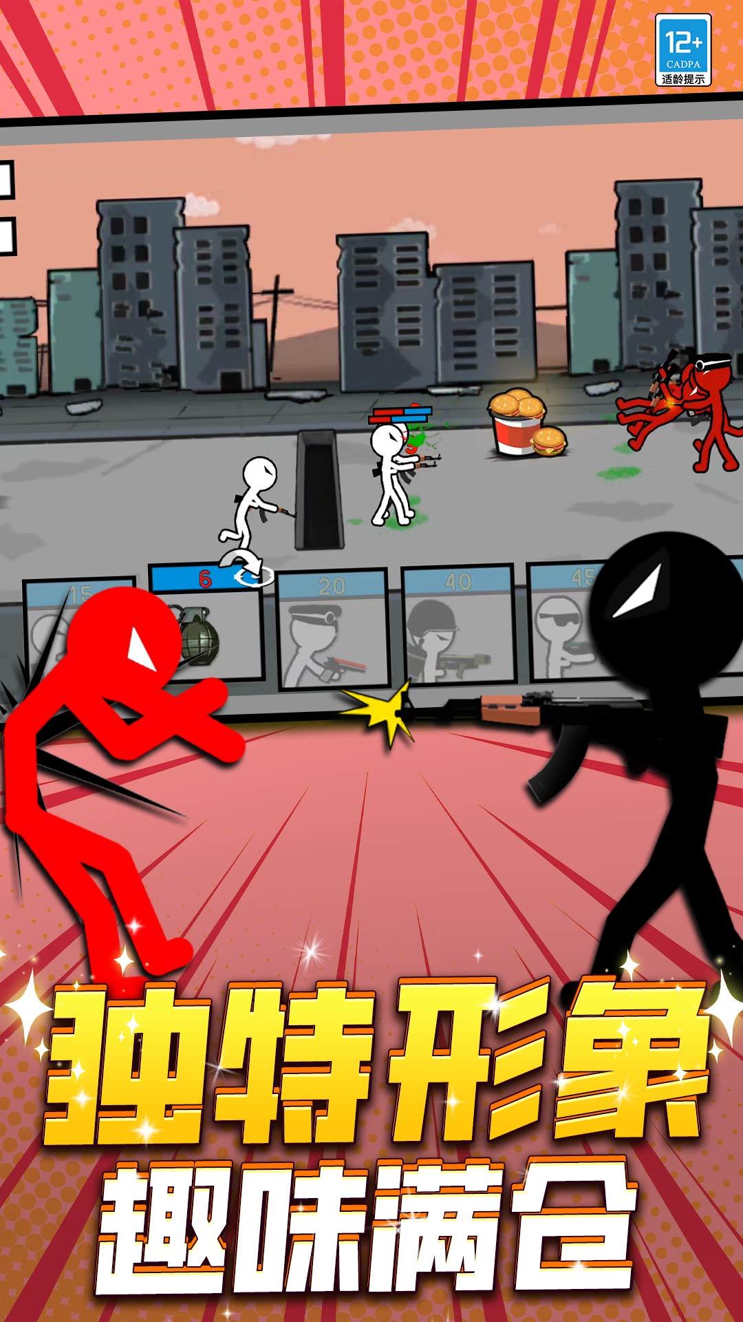 1、游戏开局前,玩家可以对自己出站的阵容进行调配,解锁更多火柴人单位,自由搭配。