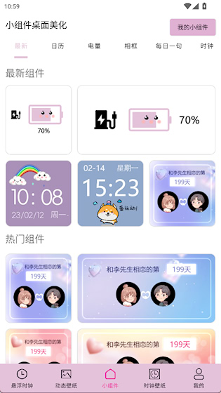 小组件桌面美化是一款桌面个性化定制应用,提供丰富多彩的小组件资源,轻松打造专属的桌面环境。内置海量组件模板,涵盖数字时钟、倒计时、累计日等多种功能组件,所有组件提供不同规格样式,让手机桌面焕然一新。