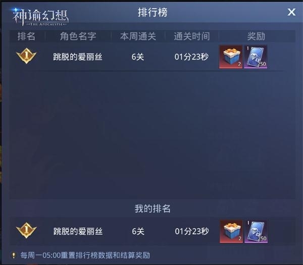 通关时长还有排行奖励,每周一凌晨5点会发放排行榜奖励和重置排行榜名次,奖励通过邮件进行发放
