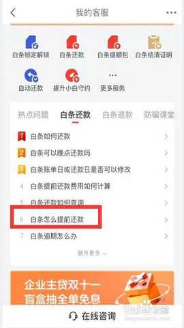 点击问题中的“白条怎么提前还款”。