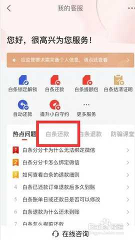 点击问题中的“白条还款”选项。