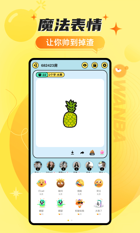 玩吧――只想和你玩到一起。玩吧app有画猜接龙、你画我猜、双人小游戏、剧本杀、狼人世界、卧底大师、阿瓦隆、撞击王者、乌诺牌等游戏可以一起玩。玩吧是一个游戏交友软件,可以多人互动、语音交友。
