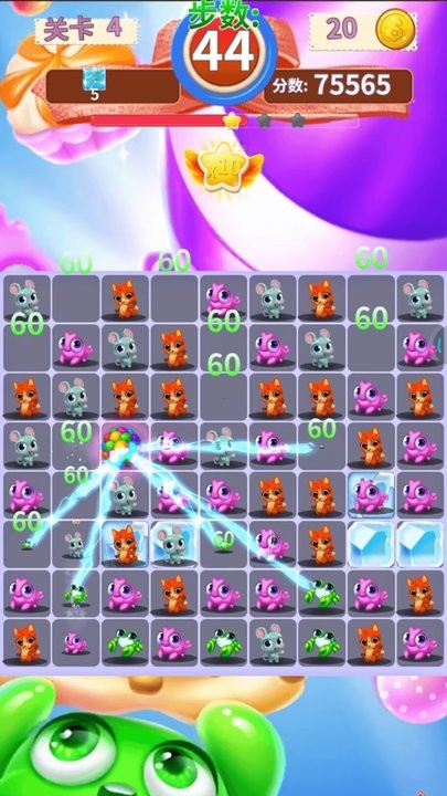1、玩家需要通过消除相同类型的卡通动物,获得得分和奖励。