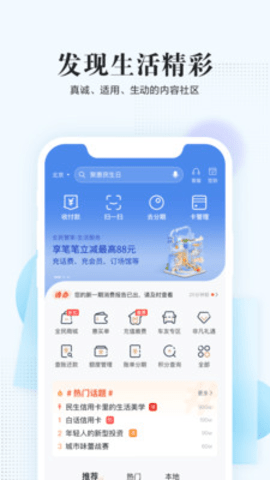 全民生活app是由中国民生银行股份有限公司信用卡中心打造的一款生活服务软件,用户通过软件可以进行实时缴费,生活优惠指南,5折美食、优惠观影,轻松管理自己的资金财产,在手机上就能缴纳一些生活服务,话费,水费,电费等等,全部都可以非常便捷好用。