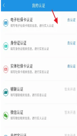 登录四川人社APP成功后,点击我的,点击去认证,选择相应的方式进行认证