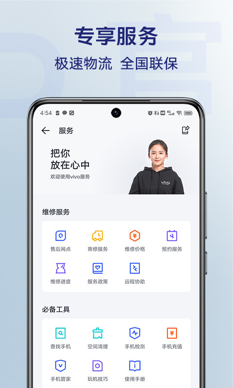 售后无忧网点查询、维修服务、远程协助和维修价格查询。