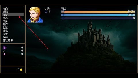 4、点击装备栏,点击武器栏,选择新手武器装备;