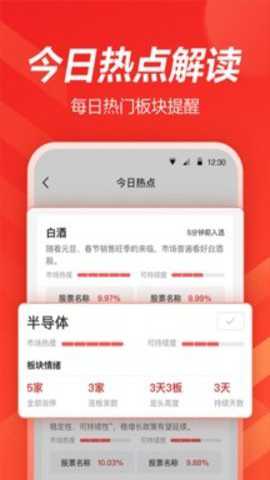 1.个股盯盘与预警:自选股资金流动、公司大事、财务变动自动触发智能盯盘,止盈止损提示预警。