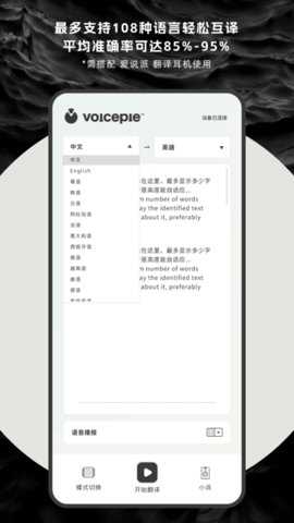 3、爱说派软件需要与爱说派翻译耳机硬件设备配合使用,集成了多引擎AI大模型,目前支持19种以上语言的实时互译,翻译准确率高达95%。