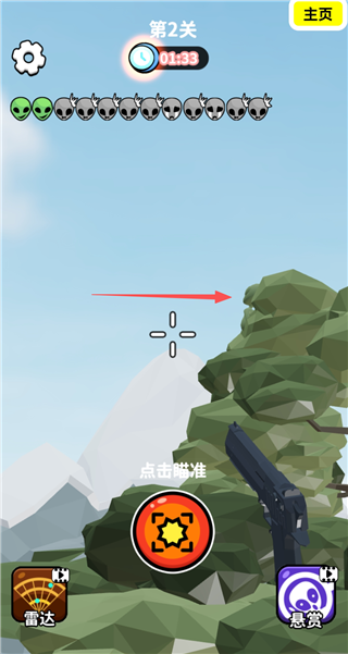 射击外星人小游戏(找到外星人射击外星人)是一款非常火爆的考验玩家眼力的射击游戏!在每个关卡的不同场景中,藏着许多外星人,玩家需要再指定时间之内,找到所有外星人并将其击毙,才能过关。当我们找不到这些善于隐藏的外星人的时候,可以使用道具对其定位,快速结束游戏。