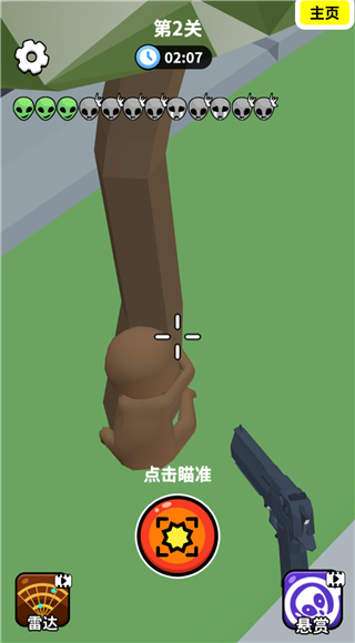 3、基础操作采用点选射击,通过点击可疑目标进行攻击。长按可放大观察细节,帮助识别伪装的外星人。
