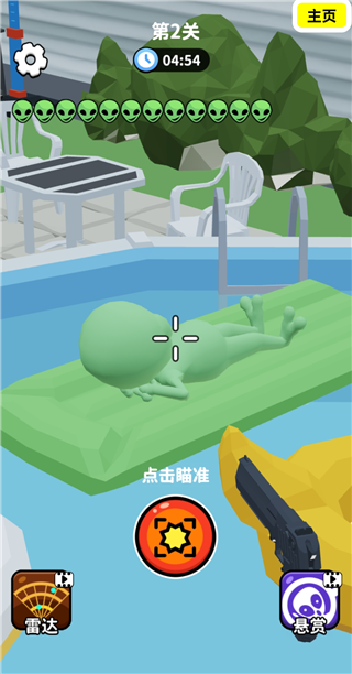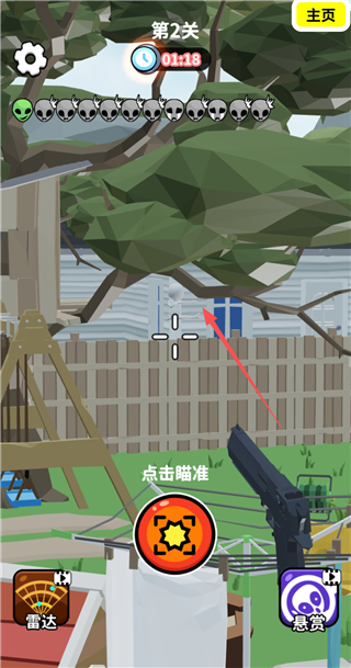 射击外星人小游戏(找到外星人射击外星人)是一款休闲益智类射击游戏,游戏采用卡通风格打造。游戏内玩家需要仔细观察场景,找到隐藏在场景中的外星人,并且使用武器消灭它们即可成功闯关,玩法十分有趣。对射击外星人小游戏感兴趣的玩家不要错过,欢迎大家在本站下载游玩。