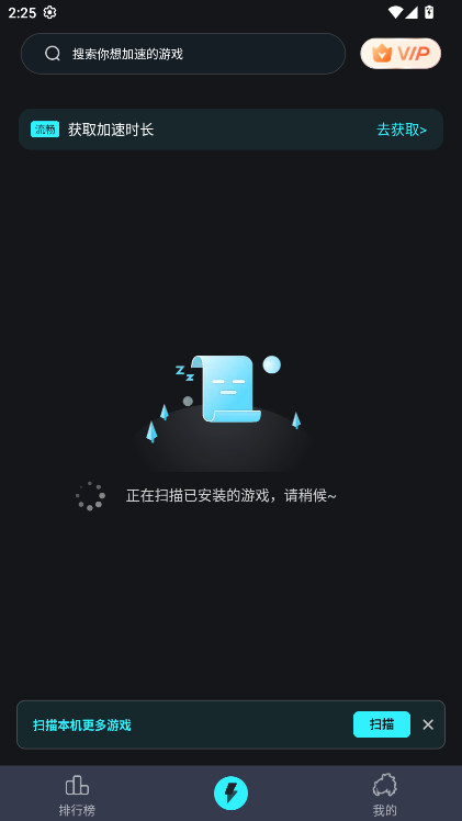 2、点击中间加速图标,扫描设备的游戏;