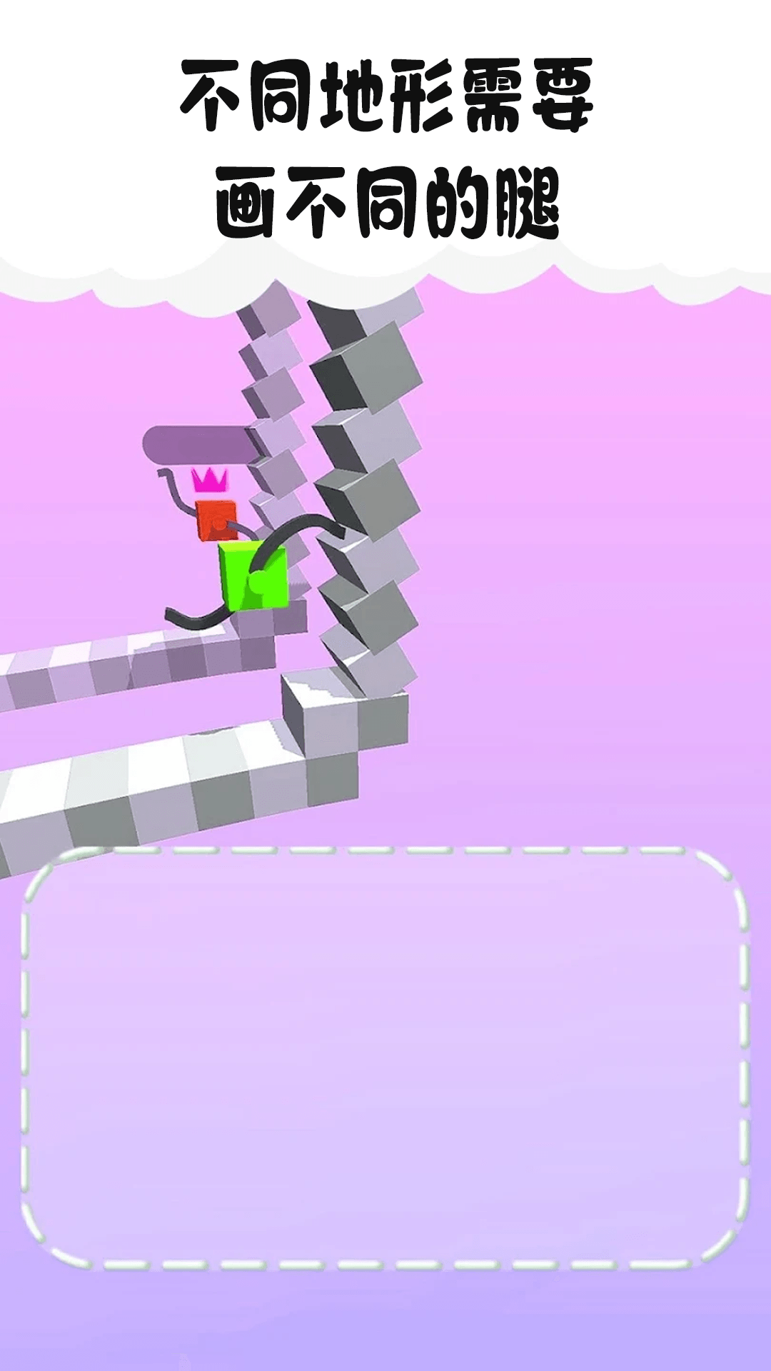 模拟闯关赛小游戏是一款以创意绘画为核心的趣味闯关类手机游戏,玩家在每关中需为角色“画脚”――如弹簧脚、吸盘脚、轮滑脚等,不同脚型对应不同地形,玩家需通过手绘图形为角色设计独特的移动方式,克服多样地形与机关障碍,完成层层挑战。