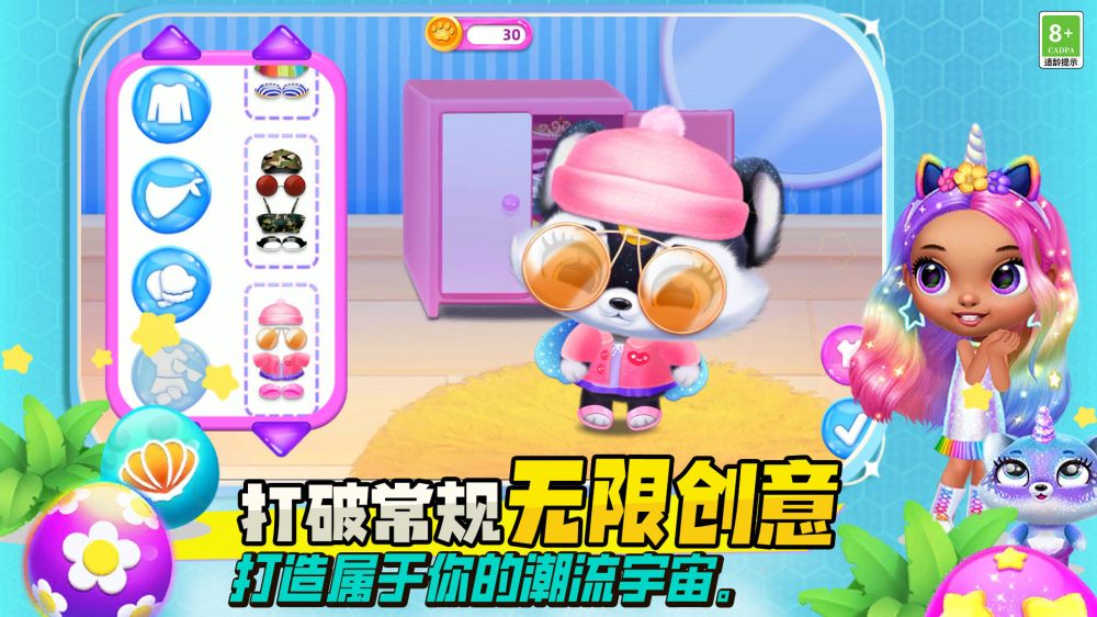 4、可打造猫咪时尚外观,挑选服饰、设计面部彩绘
