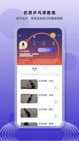1、它有优质的乒乓球教练指导课程,实时更新,并采用分节讲解和动作纠错的方式,让你足不出户即可学习乒乓球技巧。