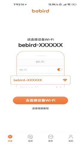2、应用市场下载蜂鸟采耳APP,安装好APP,打开WiFi,链接WiFi名为bebird-3369的WiFi信号。