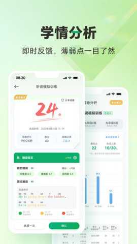1、教辅同步讲解仿真中考听说考试流程,实时评测,智能评分。