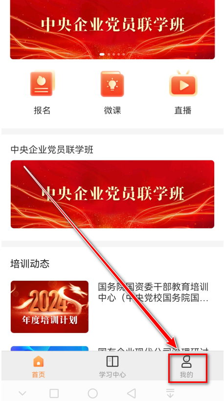 1.打开国资e学,点击右下角我的。