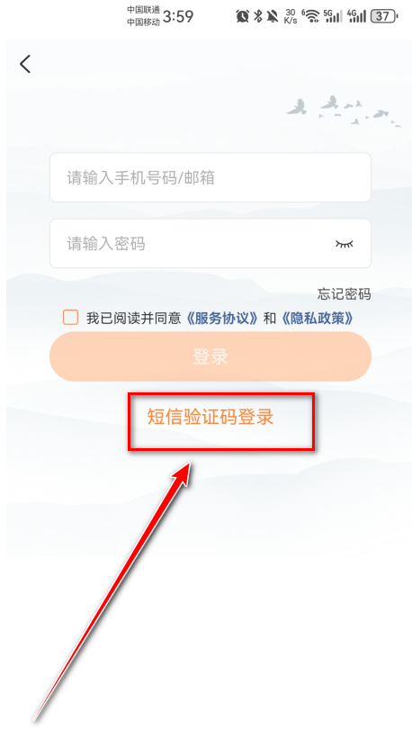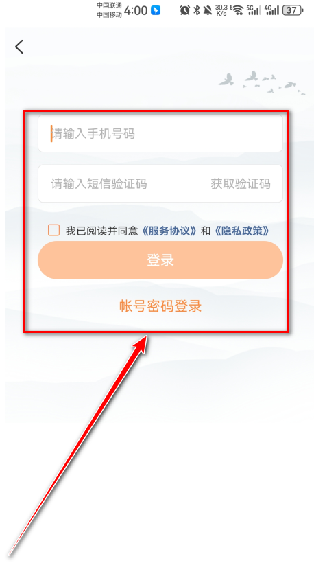 4.输入手机号码、短信验证码,勾选我已阅读并同意《服务协议》和《隐私政策》,点击登录即可注册。(注意的是新手机号码首次登录即默认注册新账号哈)