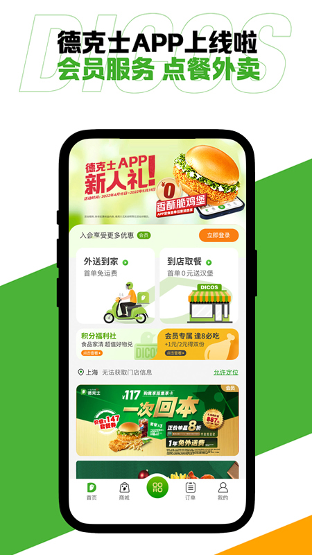 吃炸鸡汉堡,就来德克士官方APP下单!