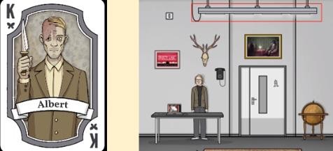 黑桃K:在物品展示柜附近拆开包裹获得红色唱片,播放唱片。