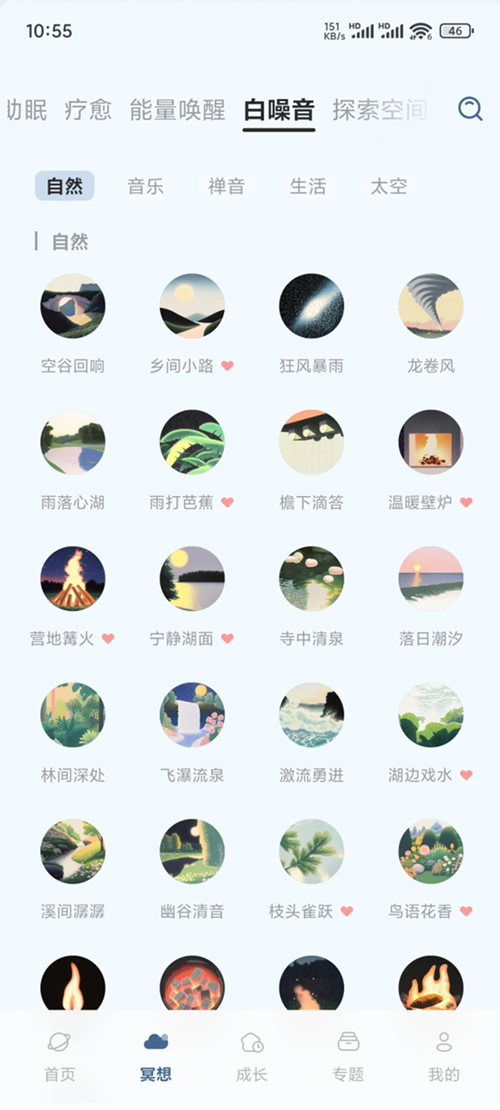 5、可在平台内挑选心仪的白噪音,睡眠时收听能舒缓神经,助力轻松进入睡眠状态。