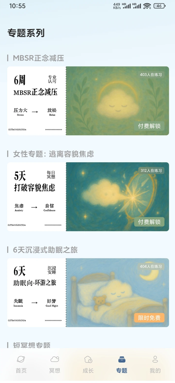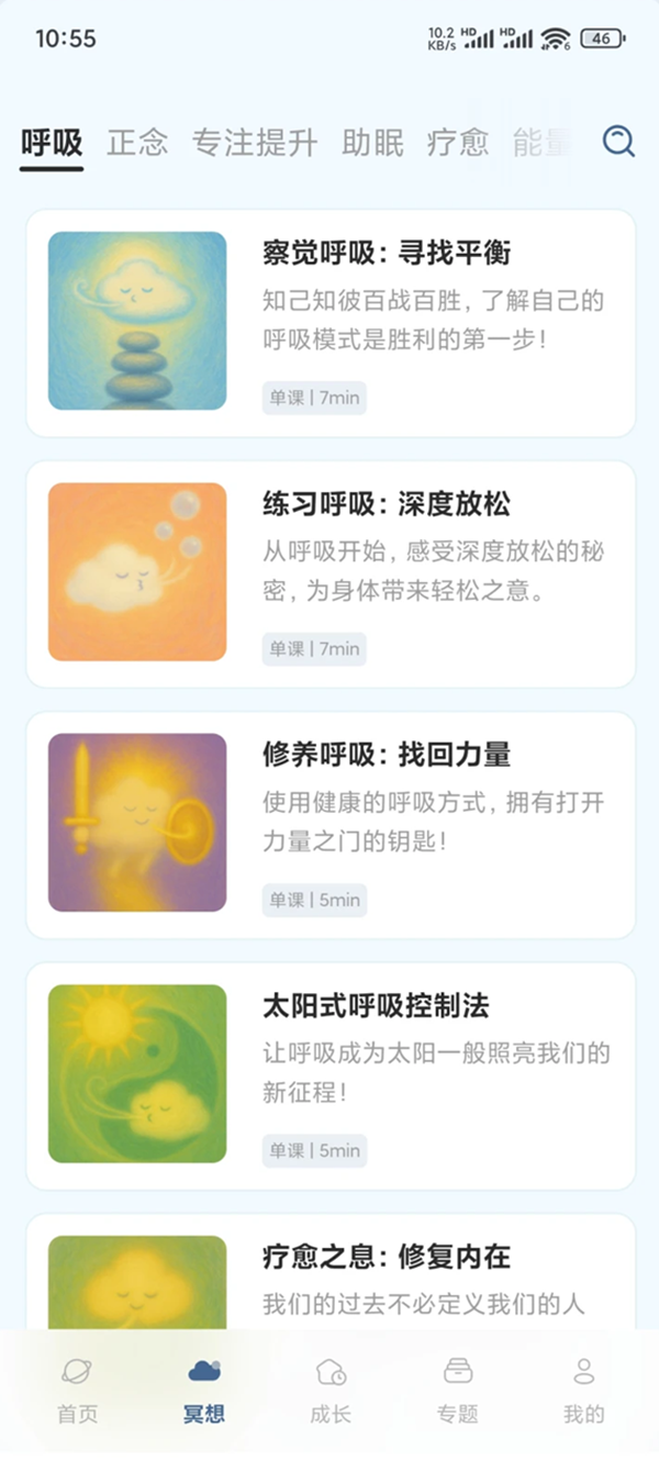 2、课程资源十分丰富,涵盖冥想基础、助眠引导、情绪调节等多种实用内容。