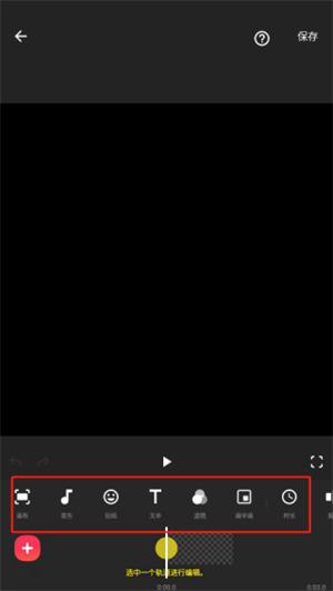 3、我们先点击视频,导入一个视频,然后进入视频编辑页面,现在就可以对视频进行剪切,调速,添加背景、滤镜、音乐、文字、贴纸等。