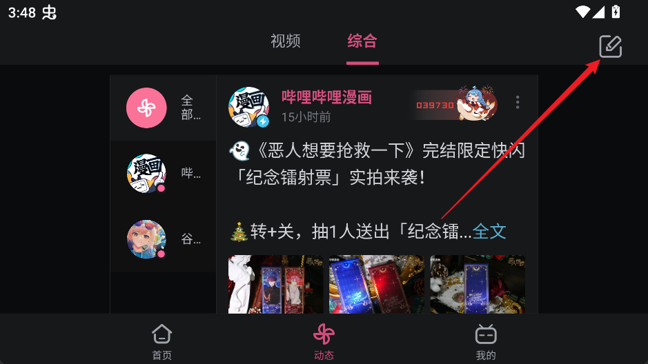 2、在动态页面点击编辑/发布按钮,即可进入投稿界面。
