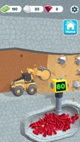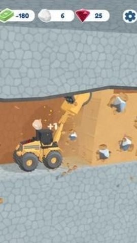 1、玩家可以控制挖掘机做作业,挖出大量的宝石,每关都有不同的目标,顺利完成任务完成关卡。