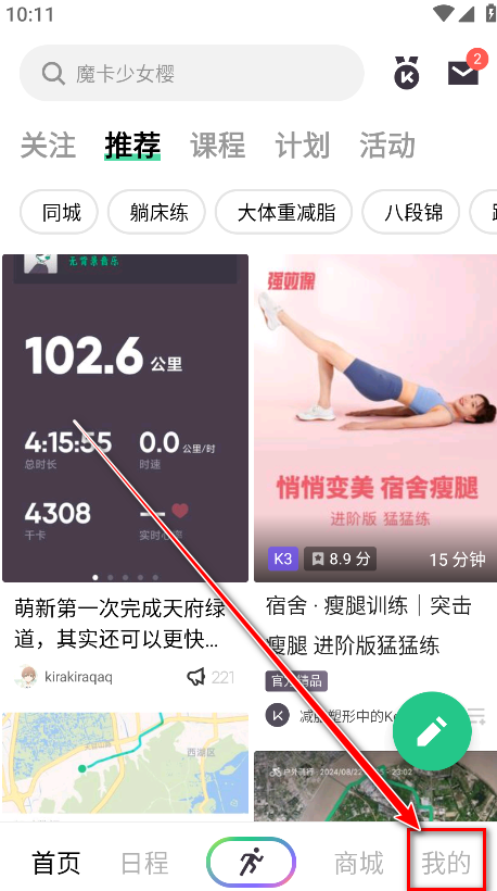 1.第一种方式是登录keep取消会员自动续费,打开Keep,点击右下角我的。