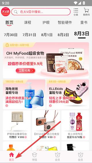 1、下载安装后进入大V店APP,首页提供了丰富的商品资源,满足不同购物诉求
