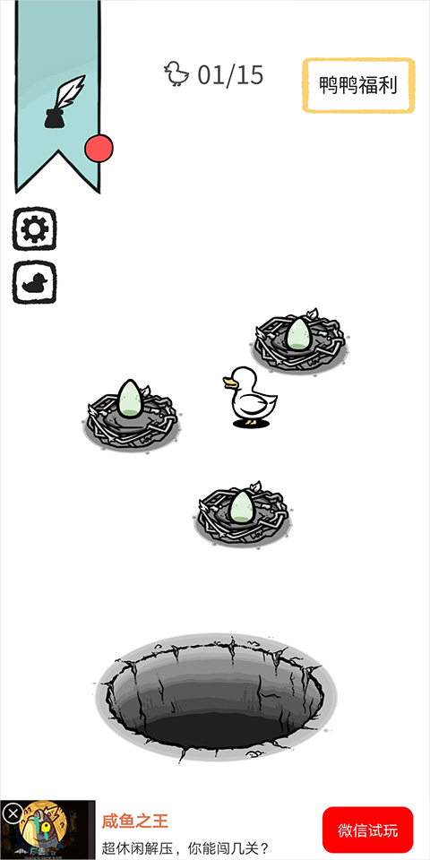 1、非常精致的游戏画风,鸭子造型独特新颖,清新简洁的游戏画面。