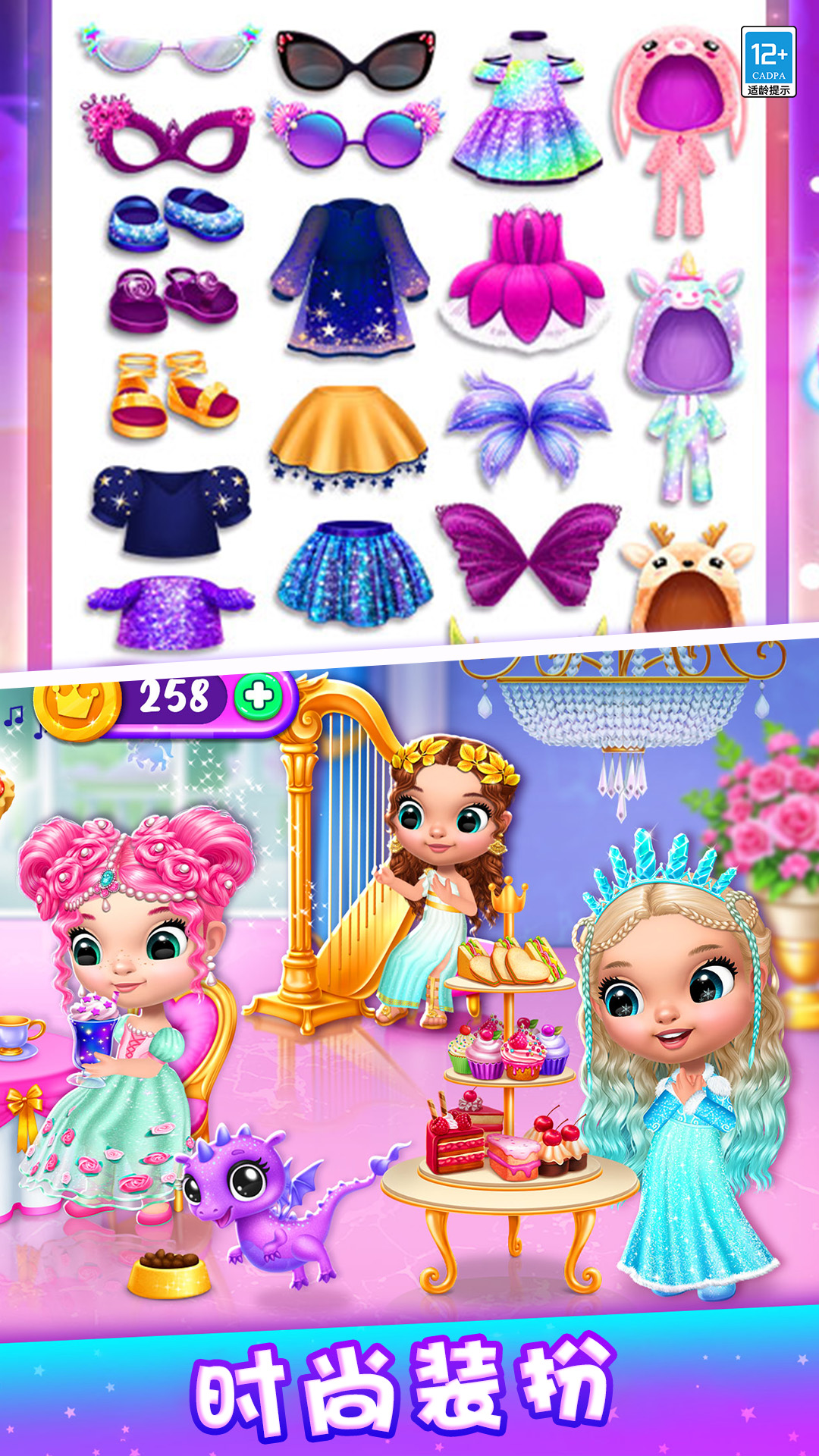 3、自由换装系统:数百套服饰、配饰自由搭配,支持自定义公主造型。