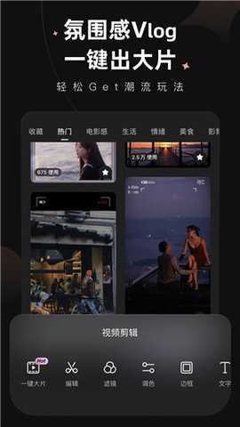 1、打开软件可在首页选择视频剪辑、视频美容、还能一键生成大片,同时下列还有许多小工具可任意使用;