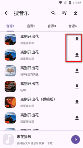 2.进入搜音乐界面,可选择音源后点搜索按钮。