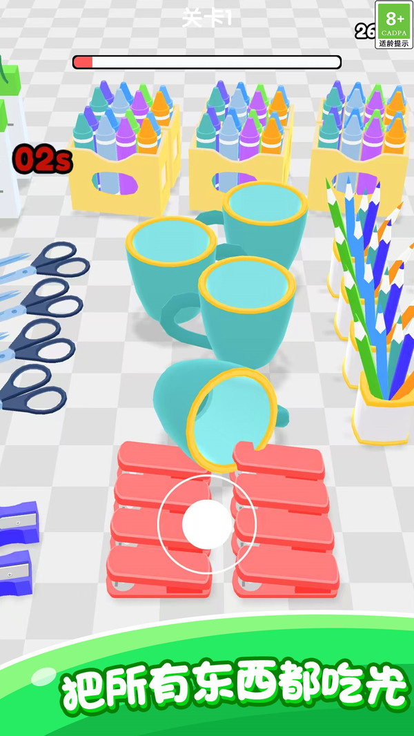 2、随着黑洞体积增大,可吞噬的物品从文具,星球层层升级,成就感同步攀升;