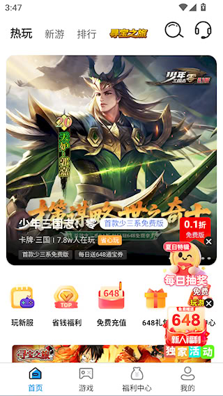 手游福利宝APP是一款游戏辅助软件,这里有超多游戏福利,不光整理了各种BT游戏,手机能玩的品类基本都覆盖到了。充值也特别划算,自助就能享0.1折,都是官方授权的,不用担心不靠谱。所有游戏都是正规官方版本,充值折扣直接连到游戏厂商的结算系统,每笔0.1折消费都能查到记录,不用怕折扣是假的,也不用担心里程碑号有风险。