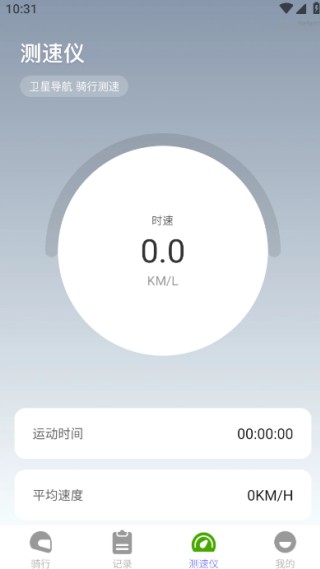 4、进入测速仪功能界面,可实时检测记录当前骑行速度,同时提供精准卫星导航服务。