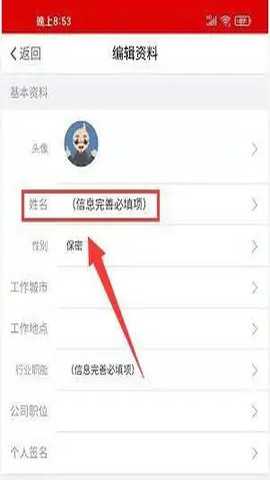 在编辑资料页面,找到【姓名】栏目。