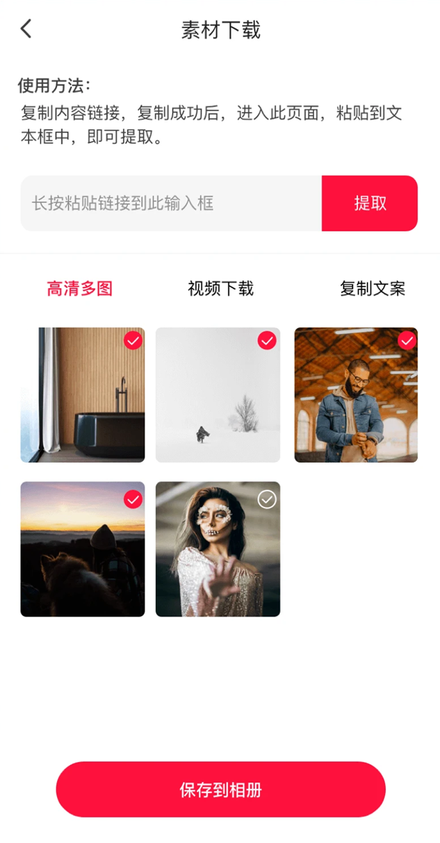 2、选择相册导入模式,从手机本地相册中挑选已下载好的视频文件进行导入。